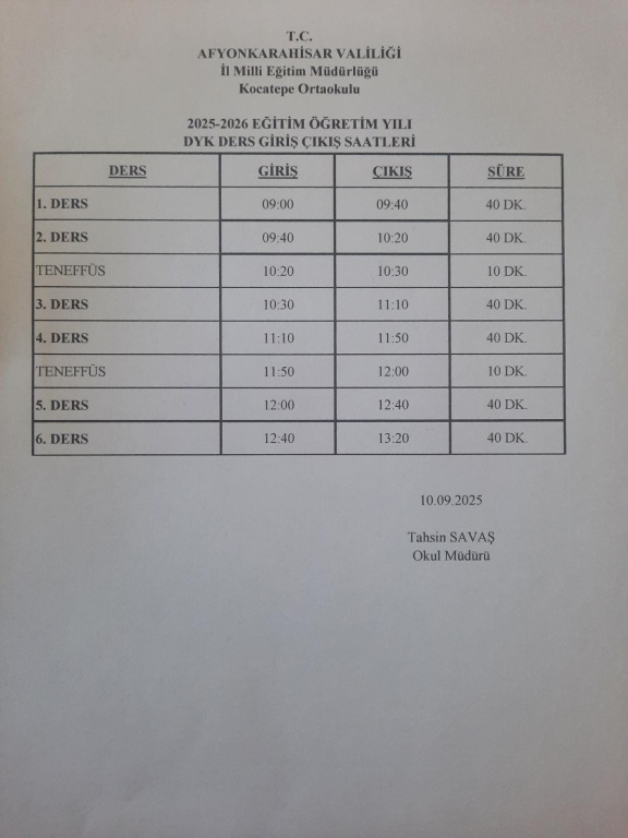 DYK DERS GİRİŞ ÇIKIŞ SAATLERİ